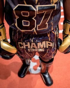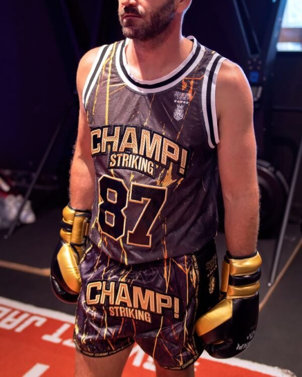 Son design vintage revisité est non seulement stylé, mais également fonctionnel, vous garantissant une liberté de mouvement inégalée. Que vous soyez un combattant chevronné ou un amateur en quête de performance, l’ensemble CHAMP! est l’allié idéal pour vous accompagner dans tous vos combats.