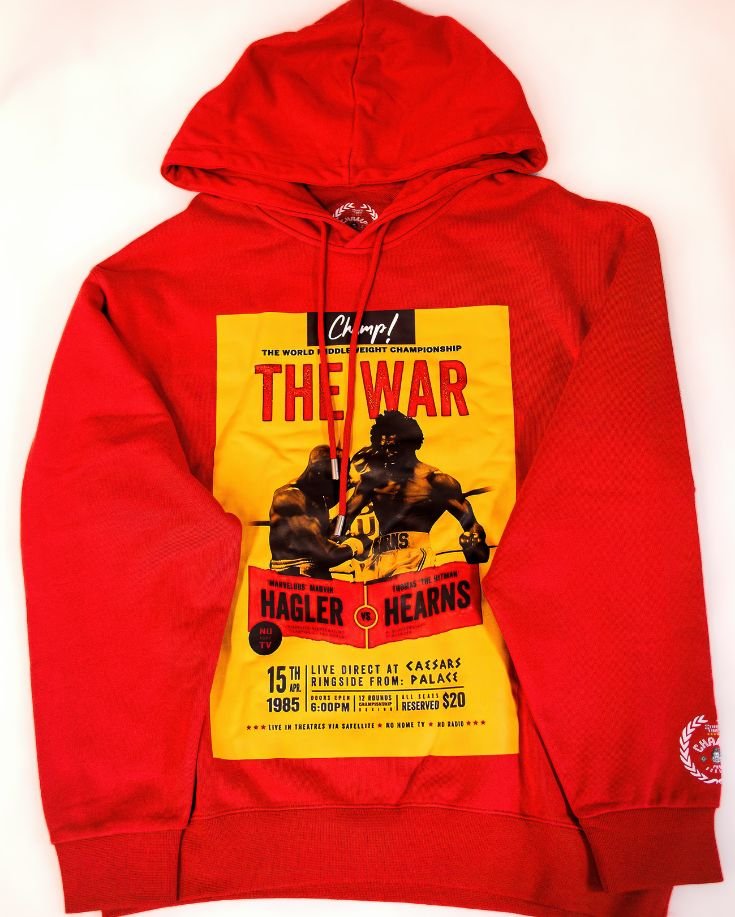 HOODIE GRAPHIQUE 100% COTON DELUXE LEGENDS FIGHT HAGLER vs HEARNS ROUGE