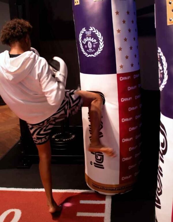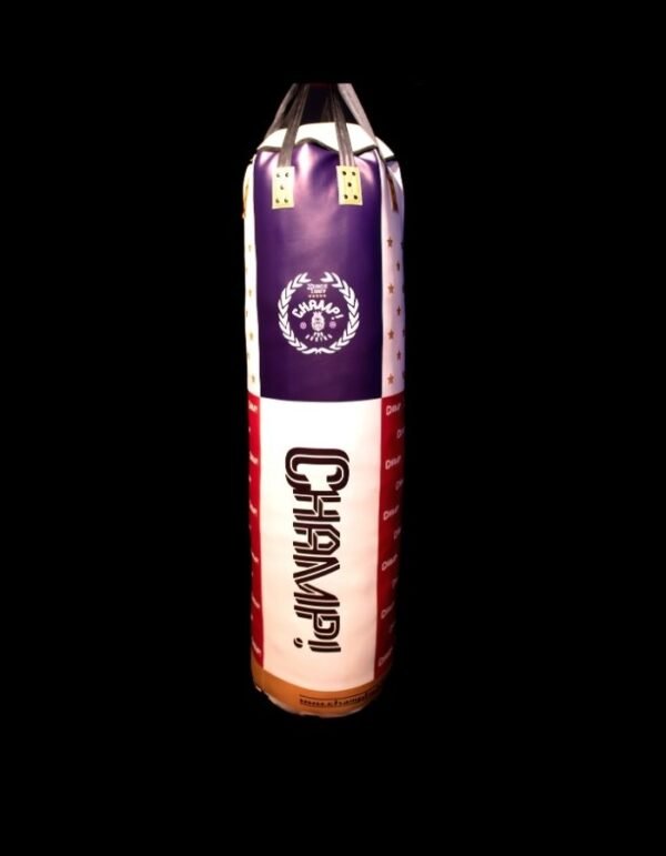 Accrocher l’anneau en CHAMP! Pro Heavy Bag directement sur une chaîne métallique entraînera de la corrosion et des dommages au fil du temps. Les sacs CHAMP! Pro Heavy doivent être suspendus par une sangle ou une corde.
