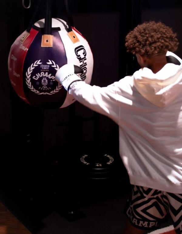 Idéal pour perfectionner les crochets et les uppercuts, le sac lourd CHAMP!Pro Wrecking Ball de CHAMP! avec sa forme arrondie unique, vous permet d’améliorer vos angles de frappe à l’intérieur, ainsi que votre endurance et vos combinaisons de coups.